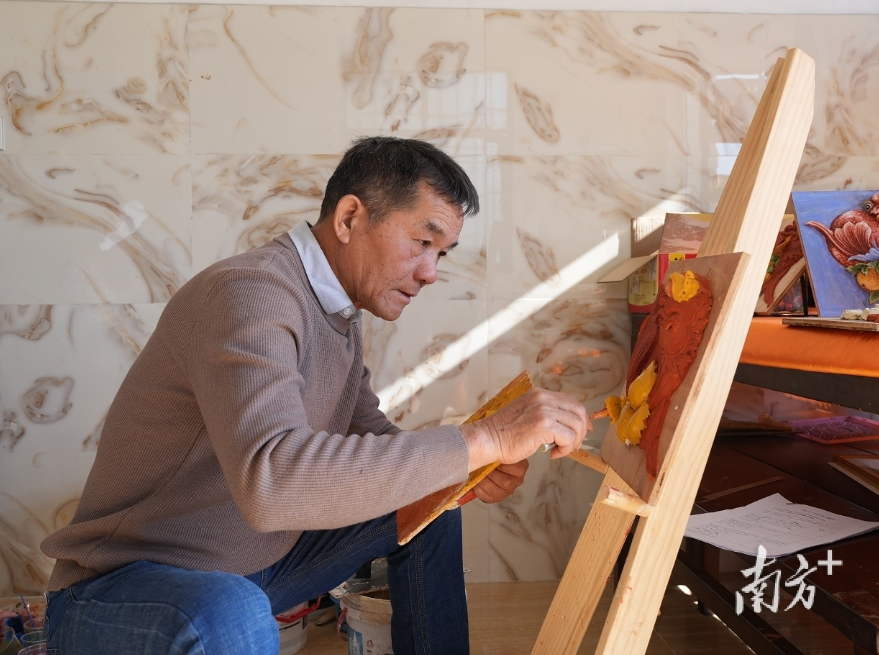 灰塑国家级代表性传承人邵成村正在专心琢磨手中的作品。