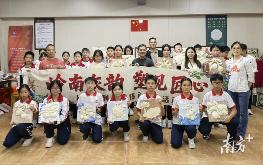 如今,为了让手艺“开枝散叶”,邵成村十年如一日,来到三华村资政大夫祠开展研学活动,将灰塑的材料特性、制作工艺、文化内涵口传心授。古老的灰塑也在年轻人的指尖上,生长出新的枝芽。